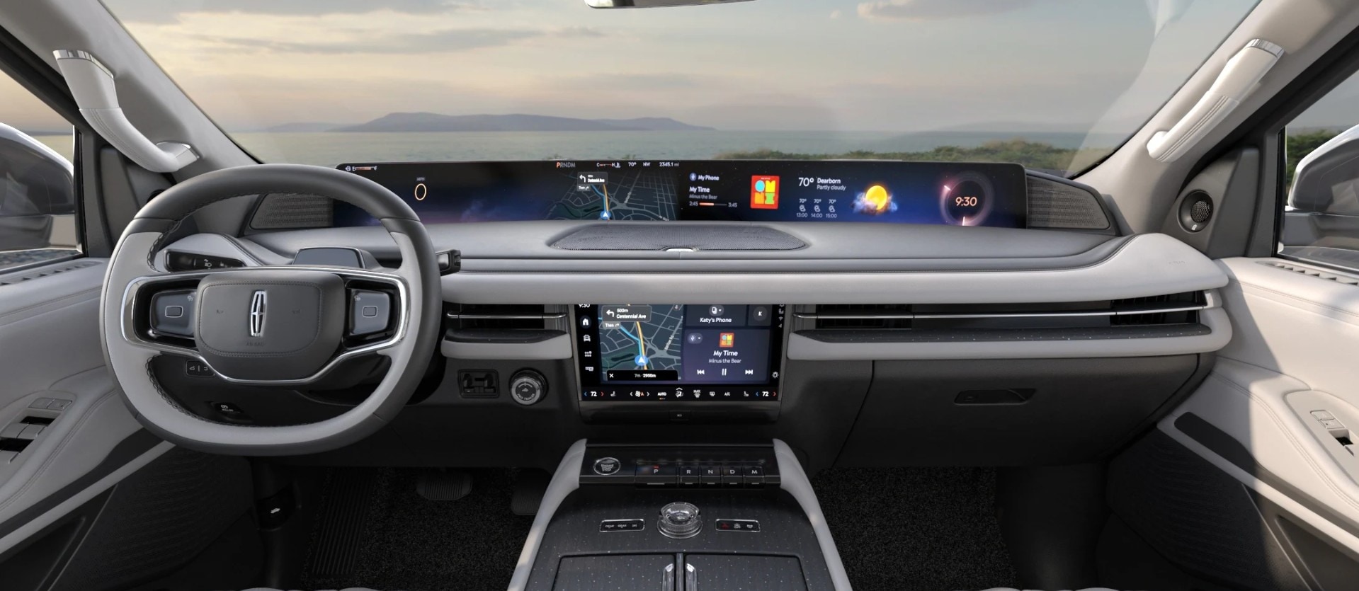- Salt Crystal Grey Leather-Wrapped Interior with Adobe Stitch